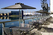 С верхнего яруса ресторана и бара открывается удивительный вид на Королевский Док Виктория на Темзе.